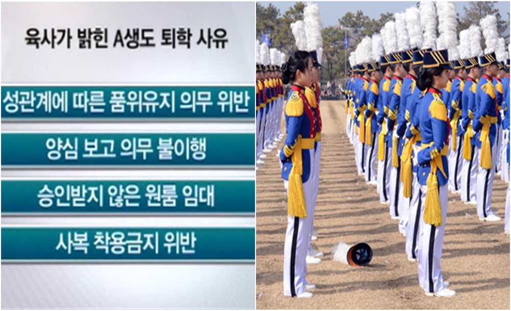한편 이런 규정이 중국에만 있는 것은 아닙니다. 우리나라에서도 약 10년 전 비슷한 사건이 있었죠. 지난 2012년 육사 생도 A씨는 소위 임관을 한 학기 앞두고 퇴학 처분을 받았습니다. 퇴학 사유는 네 가지였는데요. 그중 하나는 주말 외박 시 여자친구와 성관계를 해 품위유지 의무를 저버린 점이 주된 사유였습니다 또한 이를 자발적으로 실토하지 않고, 승인받지 않은 원룸 임대, 그리고 사복착용 금지 규정을 위반한 것이 또 다른 사유였죠. 당시 육사 측에서는 A씨가 생도생활 예규 상 남녀 간의 행동 시 준수사항에 나와있는 '도덕적 한계'를 위반한 것으로 판단했는데요. A씨가 여자친구와 쌍방 동의하에 영외에서 성관계를 했지만 도덕적 한계를 넘어선 것으로 판단했습니다.