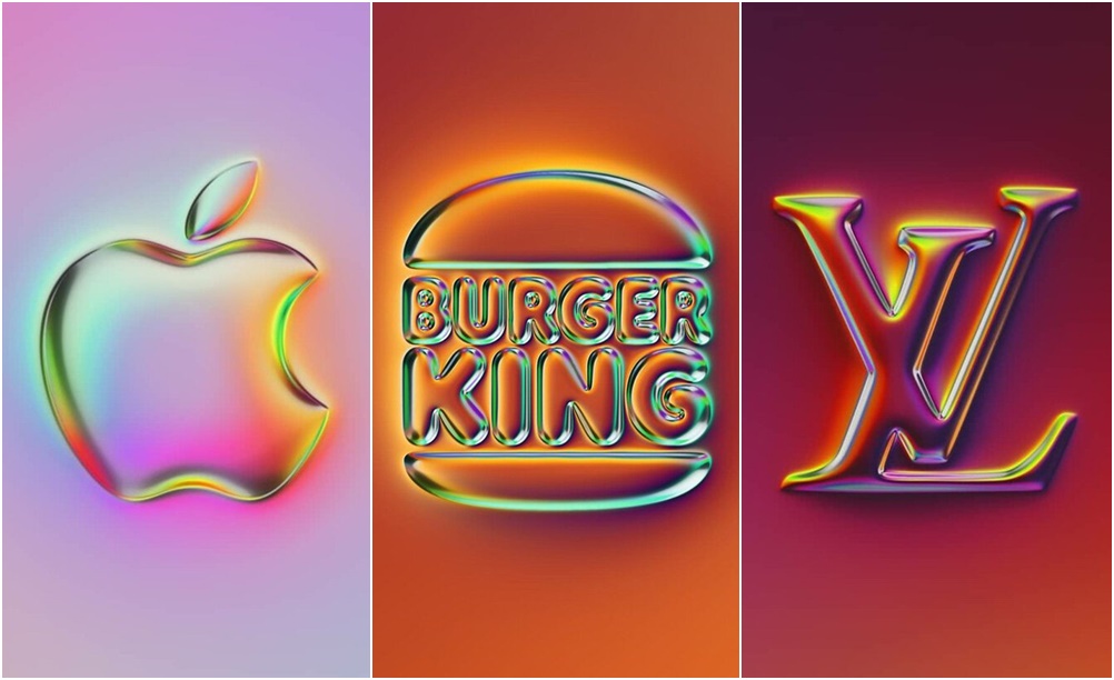 그는 마치 브랜드 로고가 홀로그램 크롬으로 만들어진 것 같도록 디자인을 완성했습니다. 이에 로고들은 동글동글하고 양감이 있으며 매우 생기 넘치고 살아있는 듯한 느낌을 주고 있죠.