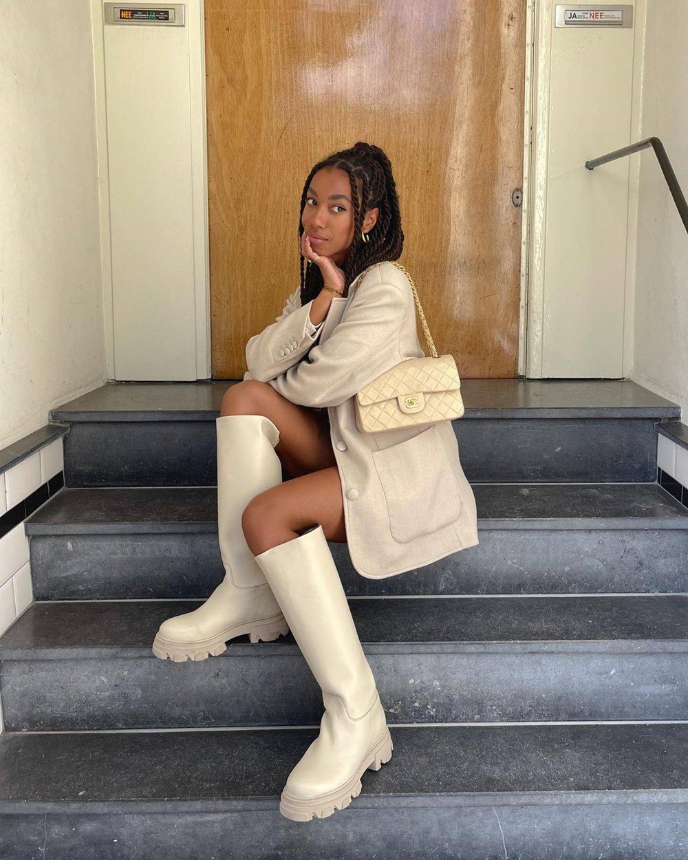고무 슈즈는 비가 올 때만 신을 수 있는 아이템은 아닙니다. 이는 비가 오나 날씨가 맑으나 다양하게 매치할 수 있는 아이템이죠. 이 트렌드는 보테가 베네타가 이끌고 있는데요. 보테가 베네타뿐만이 아니라 끌로에의 베티 러버 부츠 등이 많은 사랑을 받고 있습니다.