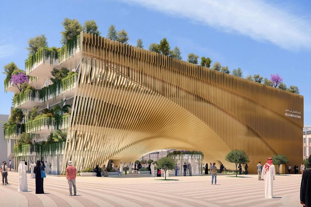모빌리티 구역에 위치하고 있는 벨기에관은 예술성과, 기술, 그리고 지속가능성을 보여주고 있는 건축물입니다. 벨기에관의 특징 중 하나는 바로 '그린 아치'인데요. 이는 바이오미미크리(biomimicry), 즉 생명체의 구조와 원리를 사용해 현대의 문제를 해결하는 것을 특징으로 하고 있습니다. 벨기에관은 제로 웨이스트 빌딩이며 10,000그루의 식물이 심어져 있는데요. 이는 35톤의 이산화탄소를 흡수할 수 있는 양입니다.