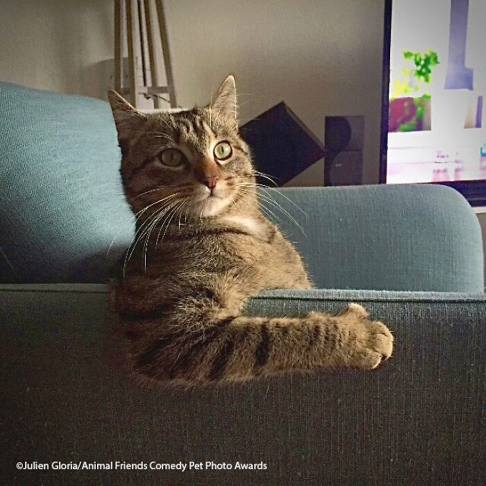 의젓하게 소파에 앉아있는 고양이의 모습입니다. 사진작가는 '퇴근 후에 집에 가면 고양이가 나 없이도 넷플릭스 시리즈를 먼저 보고 있다'며 너스레를 떨고 있습니다. (by Julien Gloria)