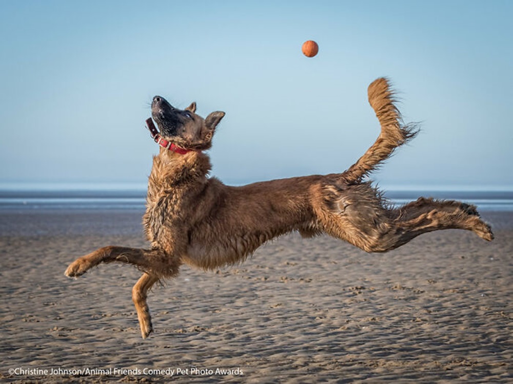 해변에서 강아지와 놀고 있던 사진 작가의 앞에 낯선 강아지가 한 마리 뛰어들었습니다. 뛰어다니며 만들어지는 이 강아지의 모양이 너무나 재밌었기에 사진으로 남겼습니다. (by Christine Johnson)