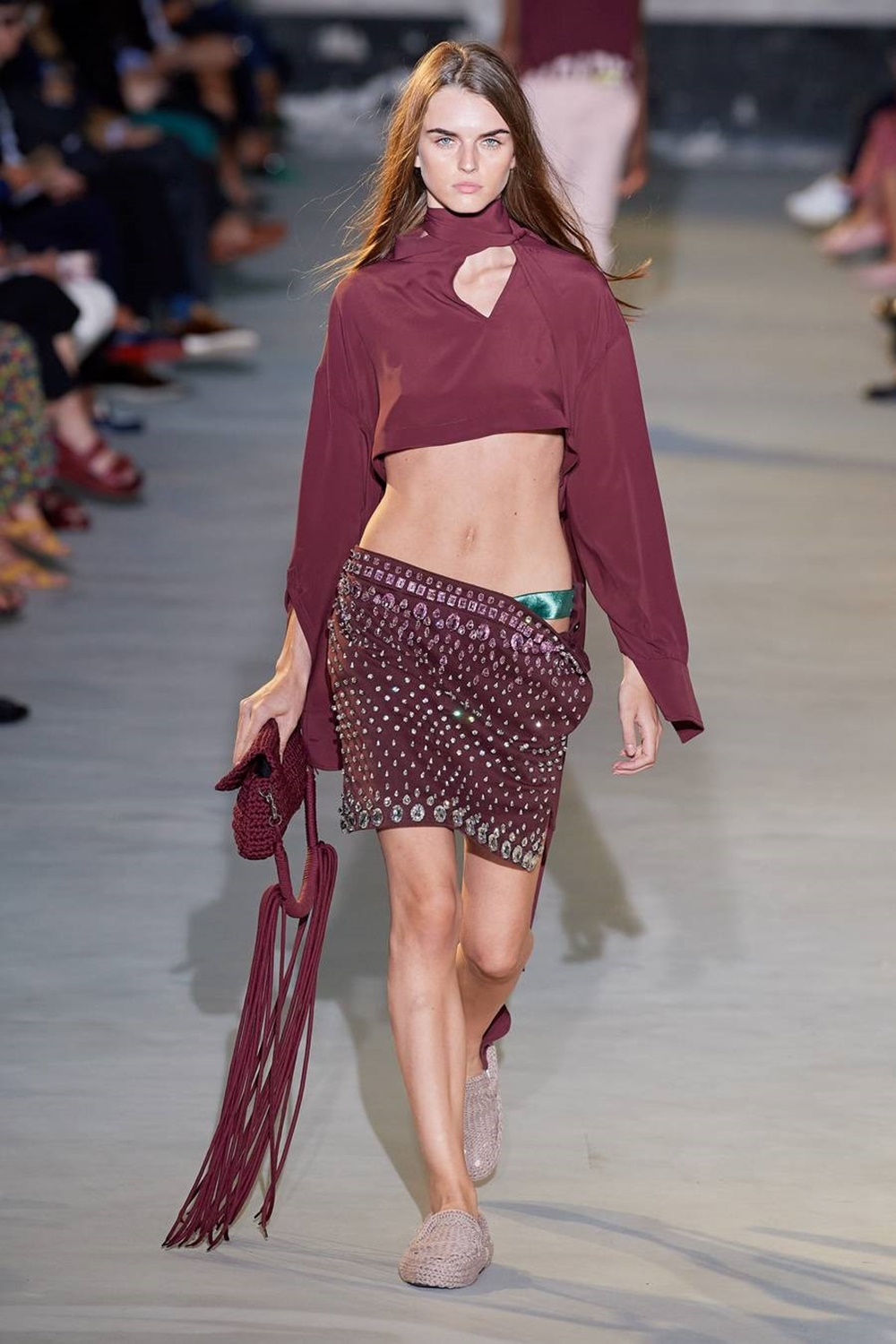 최근 몇 년 간 애슬레저 룩이 유행하며 많은 인플루언서들은 브라탑을 일상복으로 입었습니다. 그리고 올해 밀라노 패션 위크에서도 루즈핏의 아우터 안에 브라탑이 등장했는데요. 올해는 더욱 과감하게 삼각 모양의 브라탑이 등장해 더욱 엣지있는 스타일링을 선보이고 있습니다. 특히 미쏘니, 펜디, 에트로에서 삼각 브라를 선보이며 트렌드를 이끌었습니다.