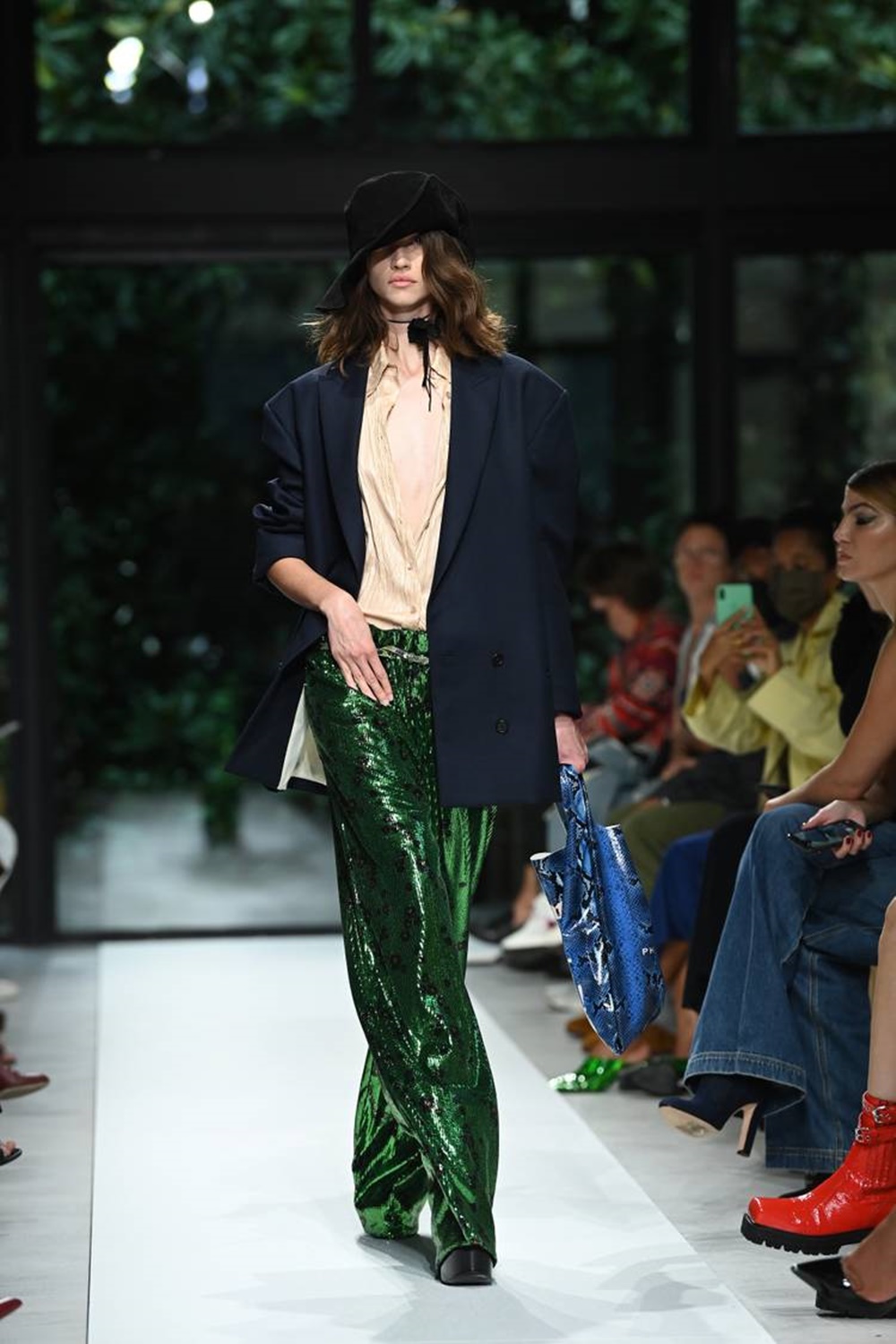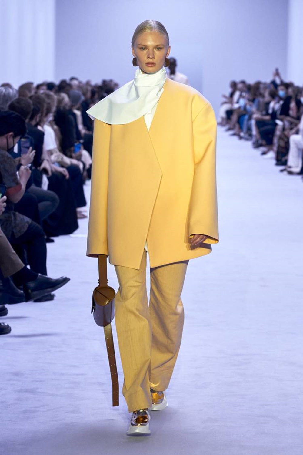 오버사이즈 블레이저 또한 밀라노 패션 위크의 핫 아이템 중의 하나입니다. 마르니에서는 오버사이즈 블레이저에 팬츠를 입지 않고 납작한 로퍼를 신어 스타일링을 완성했으며, 질샌더에서는 클래식한 팬츠 슈트를 선보였습니다. 현재 시중에는 디자이너 아이템뿐만이 아니라 저렴이 버전의 많은 오버사이즈 블레이저가 출시되어 있는데요. 청바지에 오버사이즈 블레이즈 하나만 툭 걸쳐도 멋스러운 스타일링을 완성할 수 있습니다.