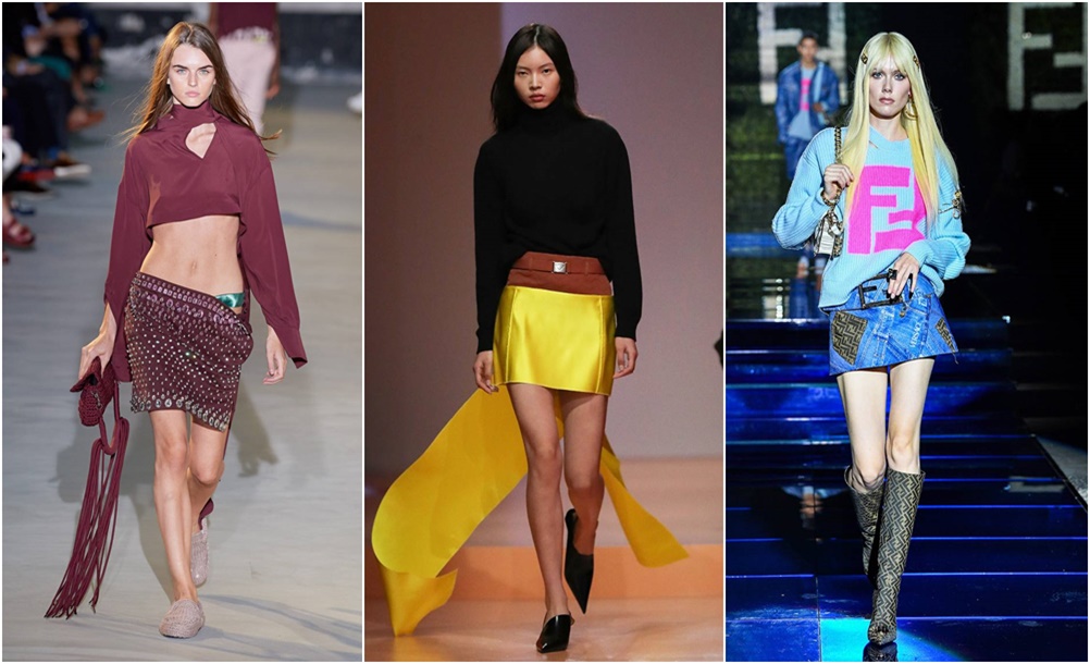 지난 몇 년간 우아한 미디 혹은 롱스커트가 패셔니스타들의 사랑을 받았습니다. 그러나 올해 밀라노 패션 위크의 런웨이에서는 짧디 짧은 마이크로 미니 스커트가 등장해 화제가 되고 있습니다. 이 미니 스커트들은 60년대 상류층 여성들의 옷장에서 갓 나온 것 같은 레트로 무드가 특징적인데요. 특히 와이드 벨트를 매치해 안 그래도 짧은 미니 스커트를 더 짧아 보이게 했네요. 프라다, 펜디, 알베르타 페레티의 미니스커트가 많은 관심을 받았습니다.