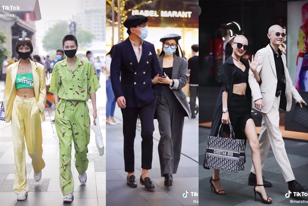 한편 일반인들을 찍는 이런 형식의 숏비디오는 더우인에서는 매우 흔한 것입니다. 스트릿 패션만 전문적으로 찍는 틱톡커들이 있는데요. 이들은 베이징의 싼리툰, 상하이의 신천지, 혹은 청두의 타이쿠리 등 대도시 번화가에 자리를 잡고 패셔너블한 일반인들을 대놓고 찍죠. 그리고 찍히는 사람들은 카메라를 보고 손을 흔들거나, 자신감 있게 카메라를 응시하는 등 자신을 찍는 카메라에 대한 거부감이 크게 없어 보입니다.