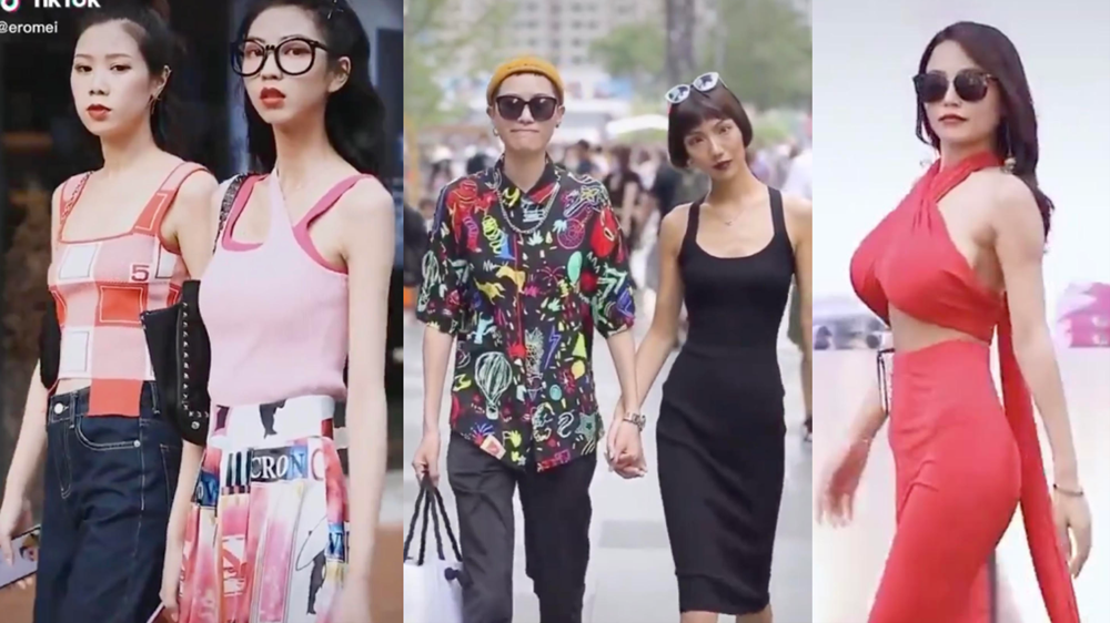 한편 일반인들을 찍는 이런 형식의 숏비디오는 더우인에서는 매우 흔한 것입니다. 스트릿 패션만 전문적으로 찍는 틱톡커들이 있는데요. 이들은 베이징의 싼리툰, 상하이의 신천지, 혹은 청두의 타이쿠리 등 대도시 번화가에 자리를 잡고 패셔너블한 일반인들을 대놓고 찍죠. 그리고 찍히는 사람들은 카메라를 보고 손을 흔들거나, 자신감 있게 카메라를 응시하는 등 자신을 찍는 카메라에 대한 거부감이 크게 없어 보입니다.