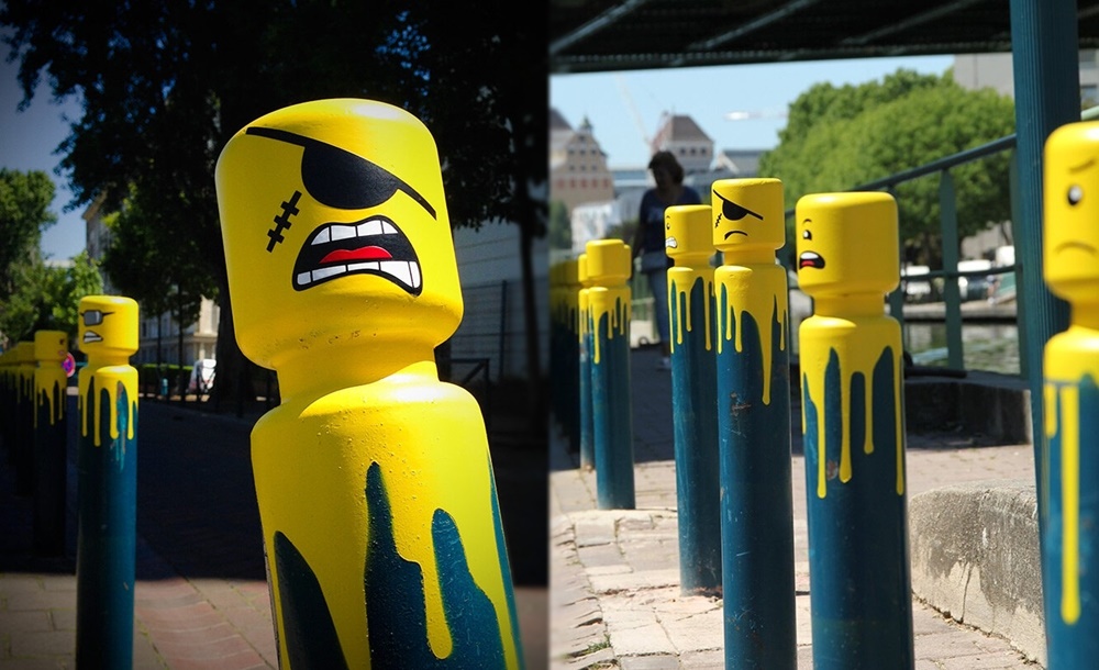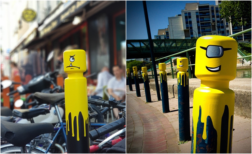 그는 2014년부터 꾸준히 프랑스의 길거리에 있는 볼라드를 밝은 노란색으로 칠해 마치 '레고'처럼 만들고 있는데요. 프랑스 파리의 북동쪽 교외에 위치한 도시 팡탱(Pantin), 파리의 서북부에 위치한 도시 콜롱브(Colombes)와 몽트레유(Montreuil) 등의 도시에서 주로 활동해왔습니다.