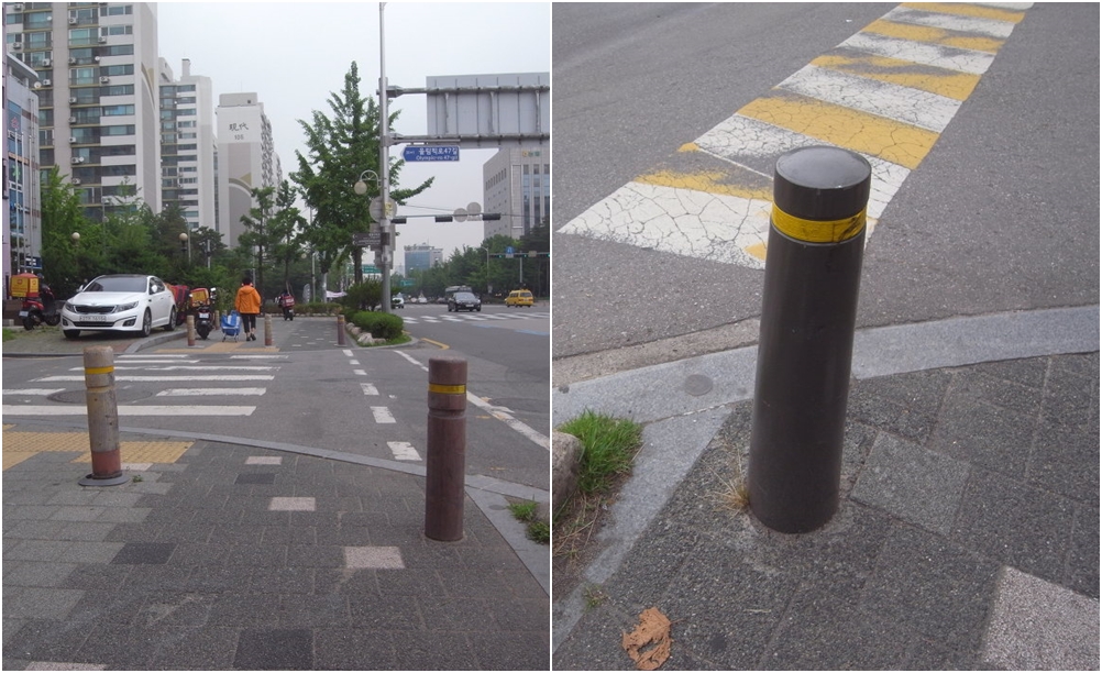 '볼라드(bollard)'를 아시나요? 볼라드는 길거리를 걸어 다니면 무조건 볼 수밖에 없는 것인데요. 그럼에도 많은 사람들이 이름은 모르는 설치물 중의 하나이죠. 볼라드는 인도나 잔디밭 따위에 자동차가 들어가지 못하도록 설치한 장애물인데요. 횡단보도에 서서 기다릴 때 인도에 설치되어 있는 말뚝이 가장 대표적이 볼라드 중의 하나입니다.