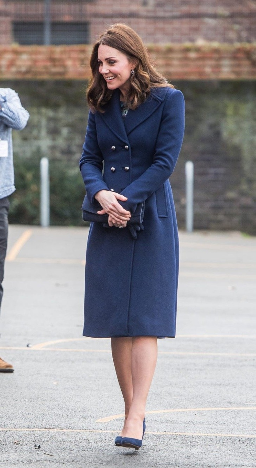 임신 기간에도 코트를 즐겨 입었던 케이트 미들턴. 그러나 이 기간의 코트 스타일링은 조금 달랐습니다. 바로 무릎이 보이는 짧은 기장감을 지낸 코트를 선보였네요. 임신으로 인해 배가 나왔지만 답답해 보이거나 둔해 보이지 않는 스마트한 스타일링입니다.