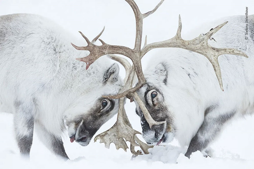 두 마리의 스발바르 순록이 발정기에 싸우는 모습을 담은 사진입니다. 결국 왼쪽의 우두머리 수컷이 경쟁자를 쫓아냈고 번식 기회를 확보하게 되었다고 하네요.