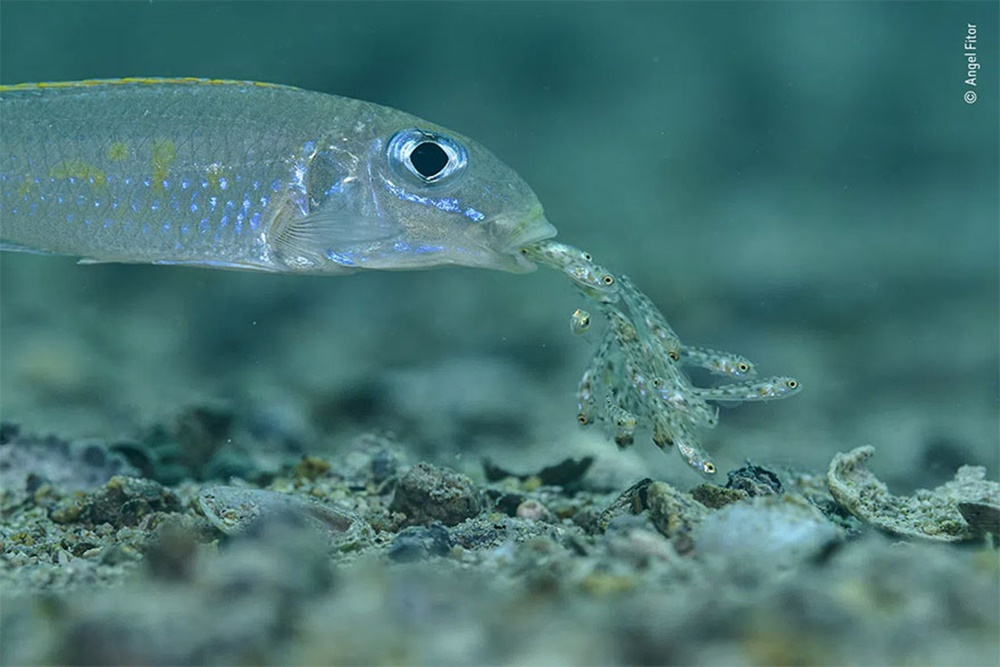 암컷 그루퍼가 알을 낳자 주변에 수컷들이 몰려들어 정자를 방출하는 찰나의 순간을 포착한 사진입니다. 이들이 방출한 정자는 물음표 모양인데요. 마치 정자의 미래에 대해 질문을 던지는 것 같습니다. 백만 개의 정자 중 하나만이 성체로 살아남기 때문입니다. 자연의 미래를 상징적으로 보여주는 이 작품이 우승작으로 선정되었습니다. 이 사진을 찍은 작가 로렌트 볼레스타는 이 장면을 포착하기 위해 5년간 3,000시간의 다이빙을 했다고 하네요.