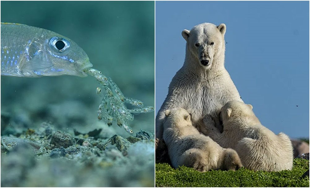 엄마의 젖을 빨고 있는 아기 북극곰의 모습을 포착했습니다. 아기 북극곰은 2년 동안 엄마의 젖을 먹는다고 하네요. 이 북극곰 가족은 사진작가의 보트에 익숙해져 있는 상황이었다고 하는데요. 이에 작가는 가까이 다가가도 방해가 되지 않는다고 판단했고, 아기 북극곰들이 젖을 빠는 소리가 들릴 정도로 가까이 다가가 사진을 찍었습니다.