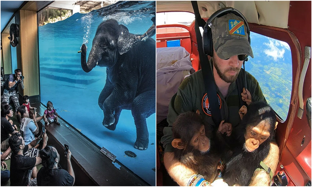 비룽가 국립공원 조종사 앤서니가 고아 침팬지 두 마리를 재활 센터로 데리고 가는 모습을 포착했습니다. 이 침팬지들은 종종 어미를 잃고 애완동물이나 동물쇼 용도로 팔린다고 하는데요. 다행히 이전에 구출되었습니다.
