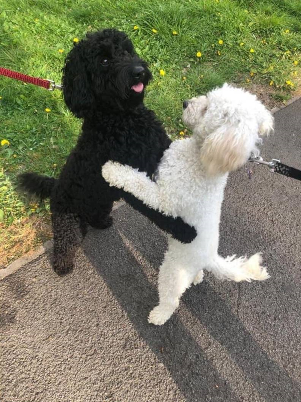 그러나 이 흰색 코카푸가 몬티에게 다가오자 이들은 서로를 알아보는 것 같았습니다. 그리고 이들은 갑자기 서로를 안고 포옹을 했습니다. 이들은 마치 서로를 오랜만에 만나 회포를 푸는 듯 한참을 즐거워했죠.