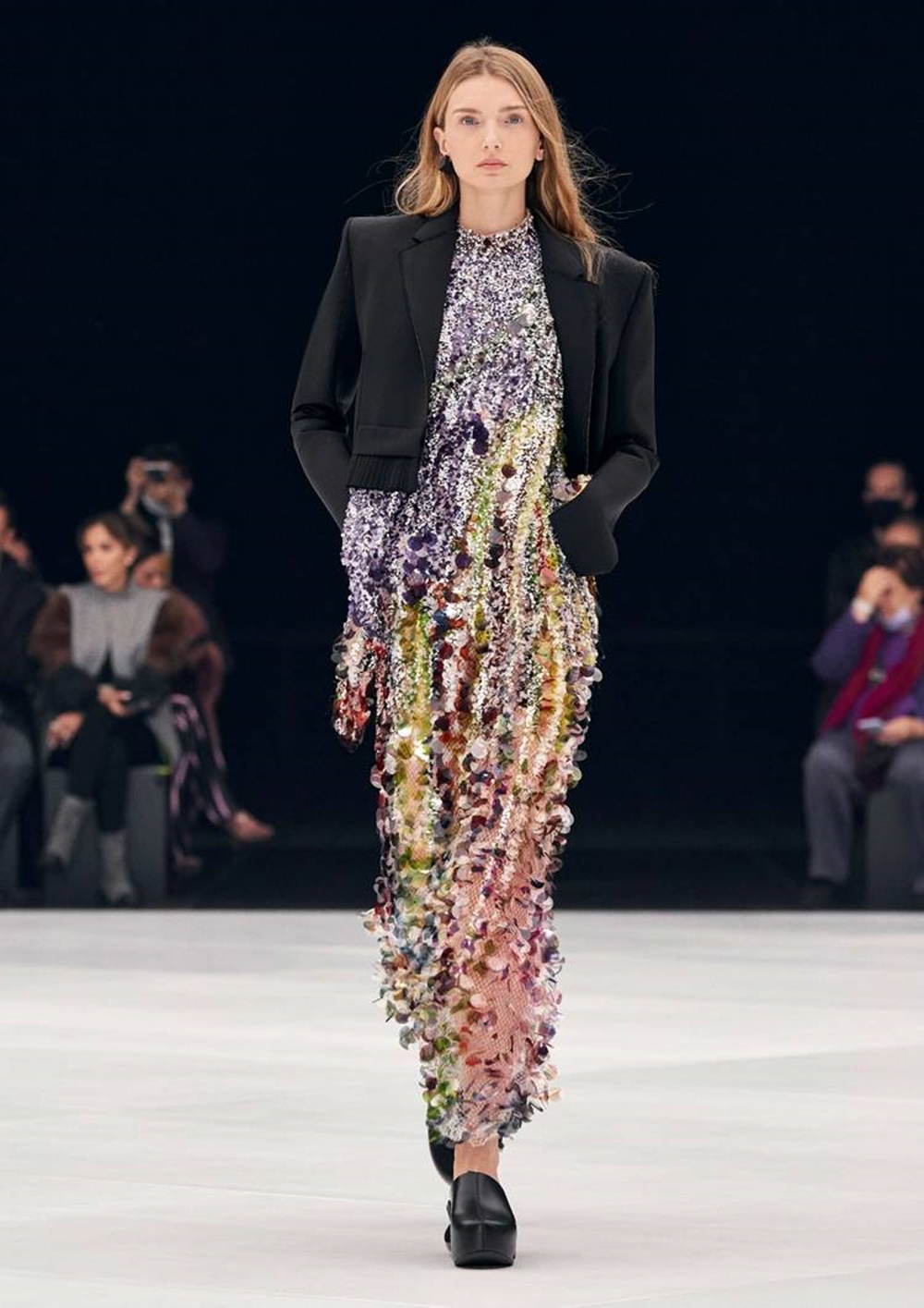 발렌시아가, 지방시, 그리고 발렌티노에서는 화려한 스팽글 소재의 의상을 선보이며 '파티퀸' 패션을 선보였습니다. 우리가 실제로 스팽글 소재의 의상을 입을 때는 최대한 미니멀한 액세서리를 사용하고, 스팽글 의상 자체의 화려함을 포인트로 삼는 것이 좋을 것 같네요.