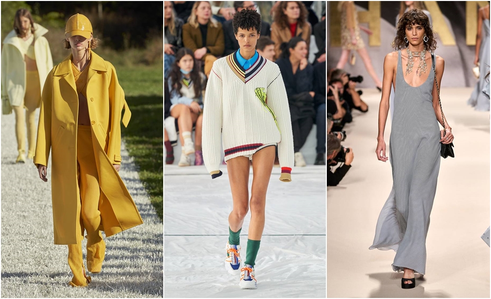 '원마일 웨어'라는 단어를 아시나요? 이는 집에서 1마일 권 내에 착용되는 옷이라는 의미로 격식을 갖춘 옷이 아니라 집에서 한가할 때 입는 홈웨어의 요소와 간단한 물건을 사러 갈 때 입는 간편한 옷을 뜻하는 단어입니다. 파리 패션위크에서도 원마일 웨어로 등장한 아이템이 있었는데요. 바로 맥시스커트와 맥시 드레스였습니다. 생로랑에서는 맥시 드레스 위에 베스트를 걸쳐 편안함에 포멀함을 한 스푼 더했으며, 로에베와 샤넬에서는 매끈한 맥시스커트로 섹시하면서도 편안한 스타일링을 선보였네요.