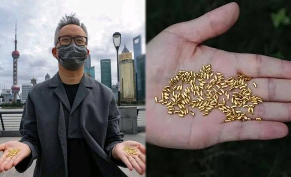 그는 자신의 메시지를 전달하기 위해 다소 극단적인 방법을 사용했습니다. 바로 쌀 모양의 금을 만들어 이를 버린 것이었죠. 그는 총 23만 위안, 우리 돈으로 약 4,200만 원어치의 순금 500g을 쌀 1,000알로 주문 제작했습니다. 그리고 이 황금쌀을 이틀에 걸쳐 시내 쓰레기통, 맨홀, 풀밭, 황푸강 일대를 누비며 한알씩 버린 것이었죠.