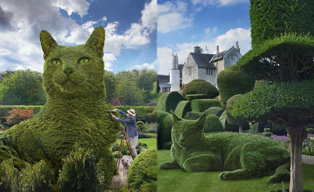 오늘 소개할 이 아티스트는 또 다른 방식으로 하늘나라에 간 고양이를 추모하고 있습니다. 바로 75세의 리처드 선더스(Richard Saunders)입니다. 공개된 이미지에는 매우 거대한 고양이의 모습이 토피어리로 만들어져 있는데요. 일부 이미지에는 아티스트가 직접 가위를 들고 토피어리를 손질하고 있는 모습이 눈에 띕니다.