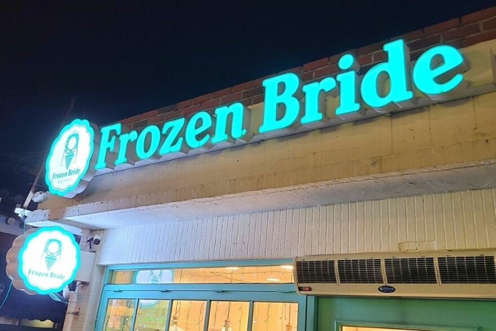 아이스크림 가게 '프로즌 브라이드'입니다. 아마 '아이스크림 신부'라는 뜻으로 이 상호를 지은 것 같지만 영어로는 다소 오싹한 뜻이라고 하네요.