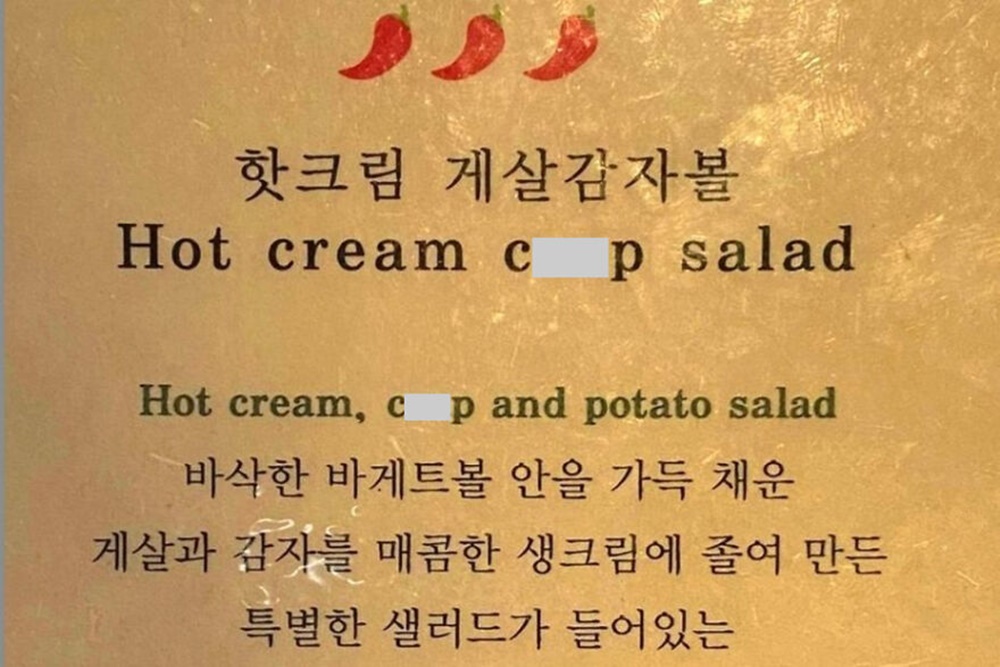 '게살'을 뜻하는 단어인 'crab' 대신 'crap'을 적어놓았습니다. 'crap'은 '쓰레기 같은 것'이라는 뜻인데요. 무언 가가 형편 없을 때 사용하는 단어입니다.