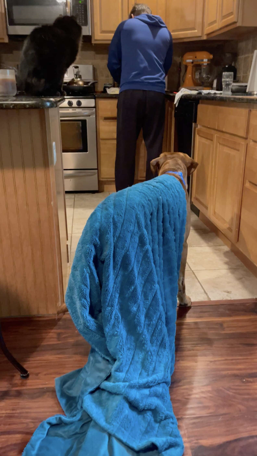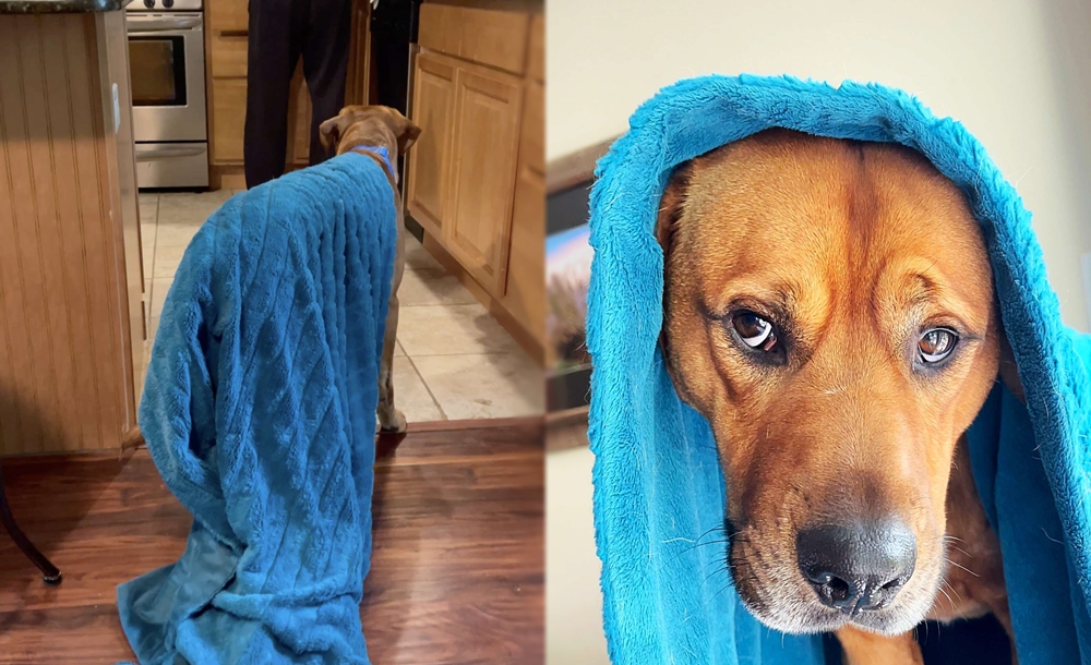 '파란 담요와 함께라면 뭐든지 OK!!' 겁쟁이 댕댕이의 무적 망토