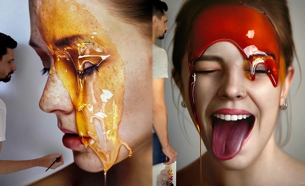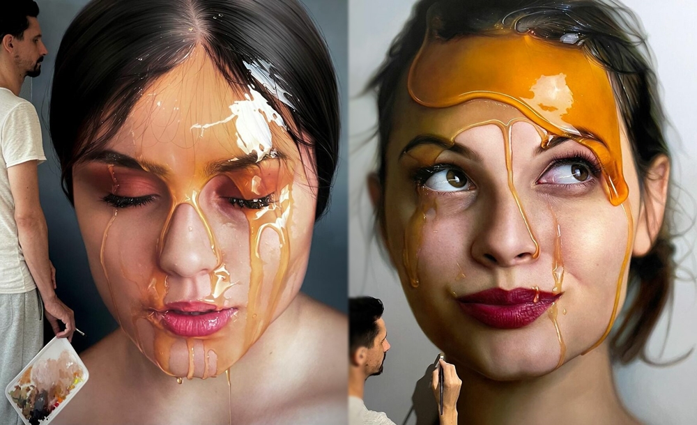 파비아노 밀라니는 마치 사진 같은 극사실주의 유화를 그리며 유명세를 탔는데요. 특히 여성들의 얼굴에 꿀이 흘러내리는 모습을 그리며, 완벽한 질감 표현으로 마치 꿀의 단내가 보는 사람에게까지 전해지는 듯합니다.