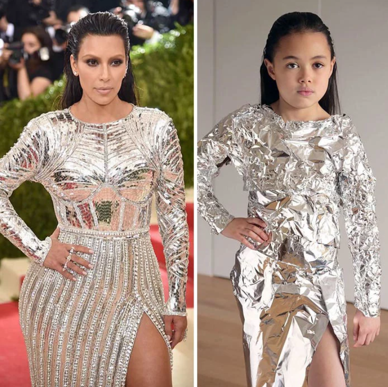 직업이 '셀럽'인 킴 카다시안의 블링블링한 드레스를 호일로 표현했네요. 사실 라일리는 이 의상을 혼자 만드는 것이 아닙니다. 그녀를 위한 '팀'이 존재합니다. 바로 라일리의 아빠와 엄마인데요. 함께 이런 작업을 하며 가족과 함께 즐거운 시간을 보낸다고 하네요.