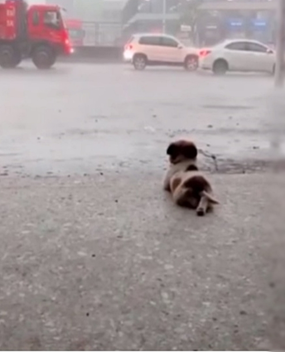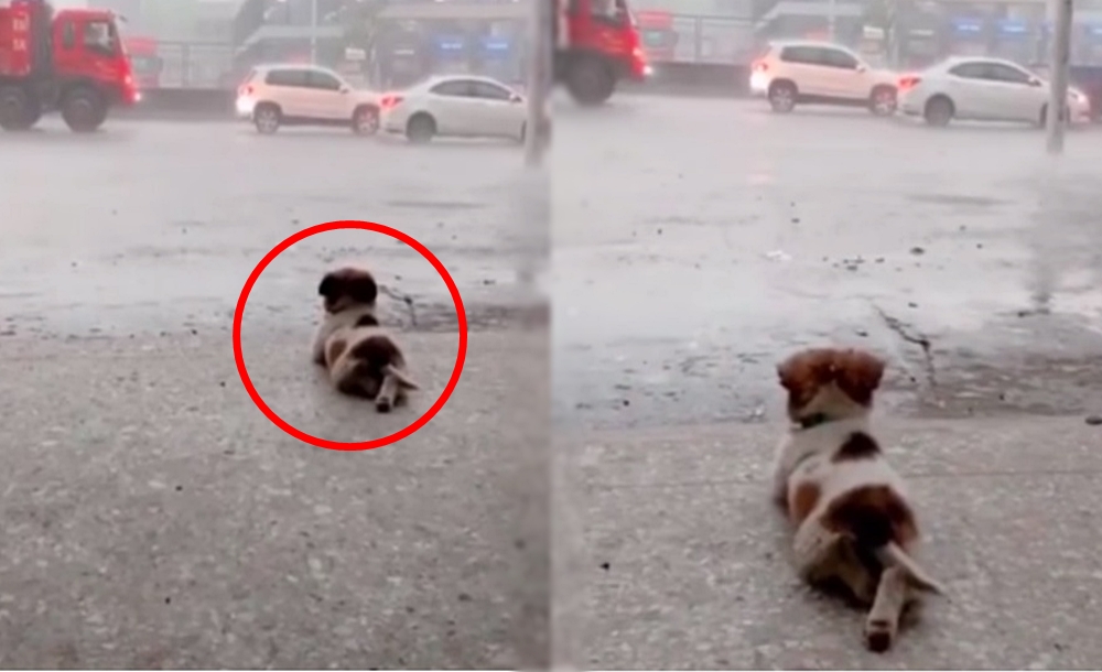 그리고 오늘 소개할 강아지는 또 다른 인생 교훈을 주는 것 같은데요. 바로 '인생의 속도를 늦추고 순간을 즐기라'는 것이죠. 바로 비 오는 광경을 평화롭게 구경하고 있는 강아지입니다.