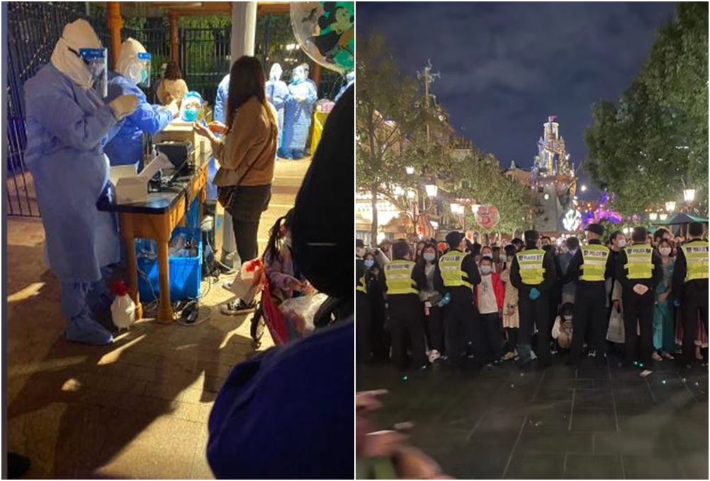 디즈니랜드뿐만이 아니라 상점, 레스토랑 등이 모여있는 디즈니 타운까지 폐쇄가 되었습니다. 그리고 이곳에 있는 사람들은 모두 코로나19 검사를 받아야만 했죠. 이들은 밤늦게까지 코로나 검사를 받았으며, 그 와중에 디즈니랜드에서는 폭죽까지 터트리며 기묘한 광경을 보여줬습니다