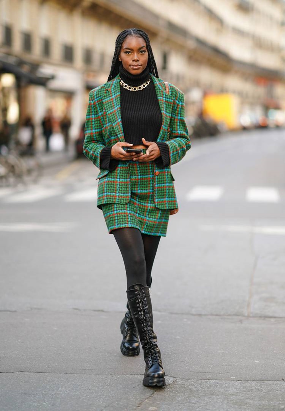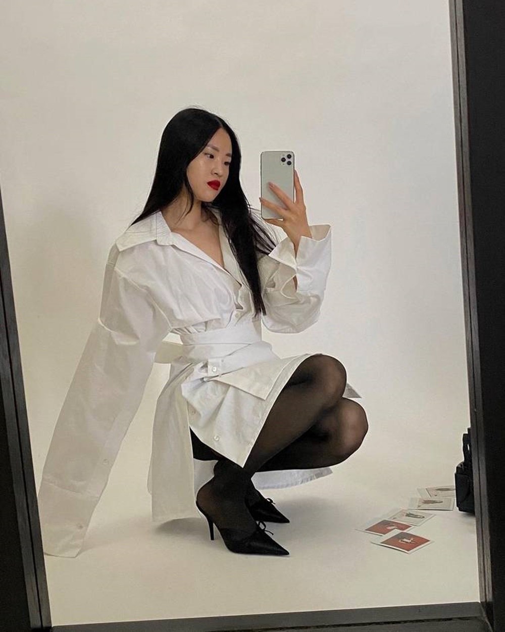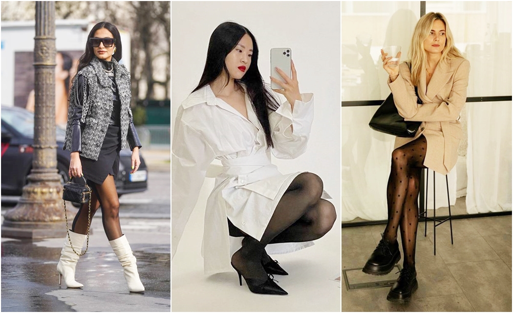 가장 기본적이고도 쉬운 스타킹 스타일링 팁은 바로 '다리를 드러내라'는 것입니다. 스타킹을 신은 다리 부분이 조금만 보이면 매우 답답하고도 어색해 보이기 때문입니다. 미니스커트를 입고 무릎 아래까지 오는 니하이부츠를 착용하거나, 블레이저 드레스를 입고 스타킹을 신은 후 청키로퍼를 신는 것도 좋겠네요. 혹은 셔츠 드레스에 뾰족한 코가 매력적인 펌프스를 신으면 섹시한 매력을 더할 수도 있습니다.