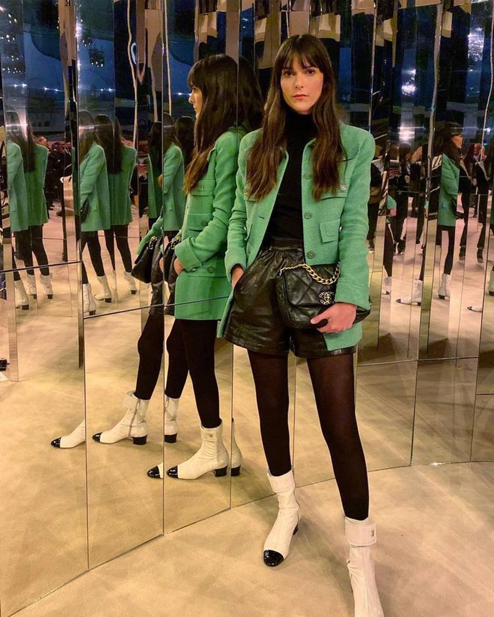 검은색 스타킹에는 검은색 슈즈만 신어야 할까요? 사실 이는 실패할 수 없는 조합이긴 합니다. 다리가 길어 보이고, 컬러 조합에 대해 신경을 쓰지 않아도 되기 때문이죠. 그러나 조금만 용기를 더 내 검은색 스타킹과 화이트 슈즈를 매치해보는 것을 어떨까요? 더욱 센스 있는 스타일링을 완성할 수 있을 것 같네요.