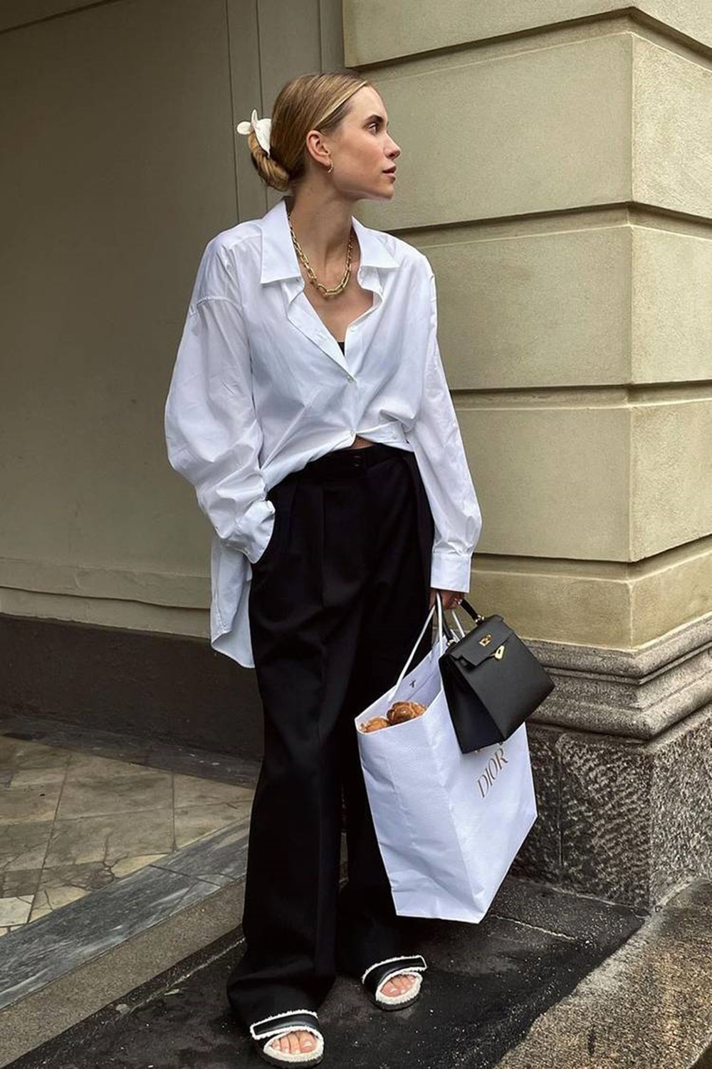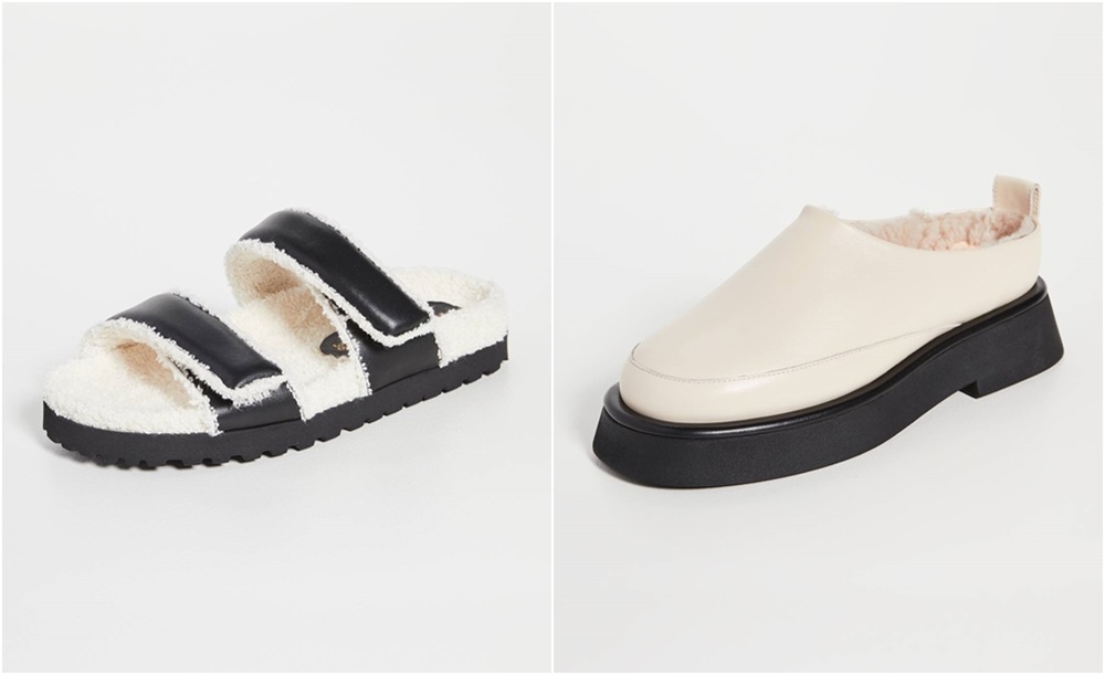 따뜻하고 복슬복슬한 시어링 소재는 가을, 겨울의 단골 아이템입니다. 이미 보테가 베네타 등의 럭셔리 브랜드에서는 시어링 가방을 출시하며 시어링 소재의 유행을 알리고 있죠. 그리고 또 하나의 시어링 아이템이 유행할 조짐을 보이고 있습니다. 바로 시어링 슬라이드입니다. 시어링 슬라이드는 맨발에 신어도 좋지만 컬러풀한 양말을 신고 착용해도 좋은 아이템입니다.