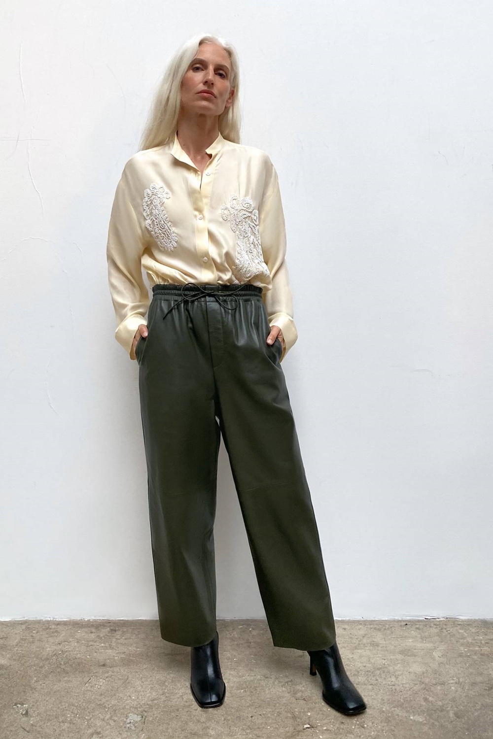 2. 컬러 가죽 하의 + 상의는 심플하게