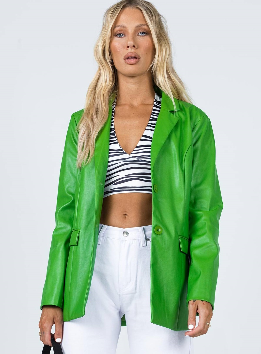 앞선 가죽 아이템이 너무 부담스러우신가요? 그렇다면 가죽 패션의 정석에 약간의 변주를 주는 것도 좋을 것 같습니다. 컬러풀한 가죽 블레이저를 입는 것이죠. 간단하지만 포인트가 되는 패션 아이템이 될 수 있습니다. 간단하게 청바지에 입거나, 올 블랙을 상하의를 갖춰 입고 컬러풀한 가죽 재킷을 입는다면 쉽게 스타일링할 수 있습니다.