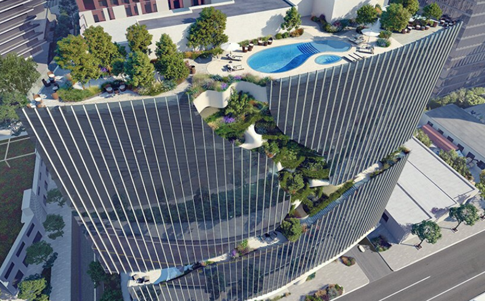 루프탑 테라스도 있습니다. 루프탑 테라스는 약 190평 정도인데요. 이곳에는 수영장, 스파가 마련되어 있으며 저 멀리에 있는 록키 산맥도 볼 수 있다고 하네요. 1층에는 890평 규모의 상업 시설이 들어설 예정입니다.
