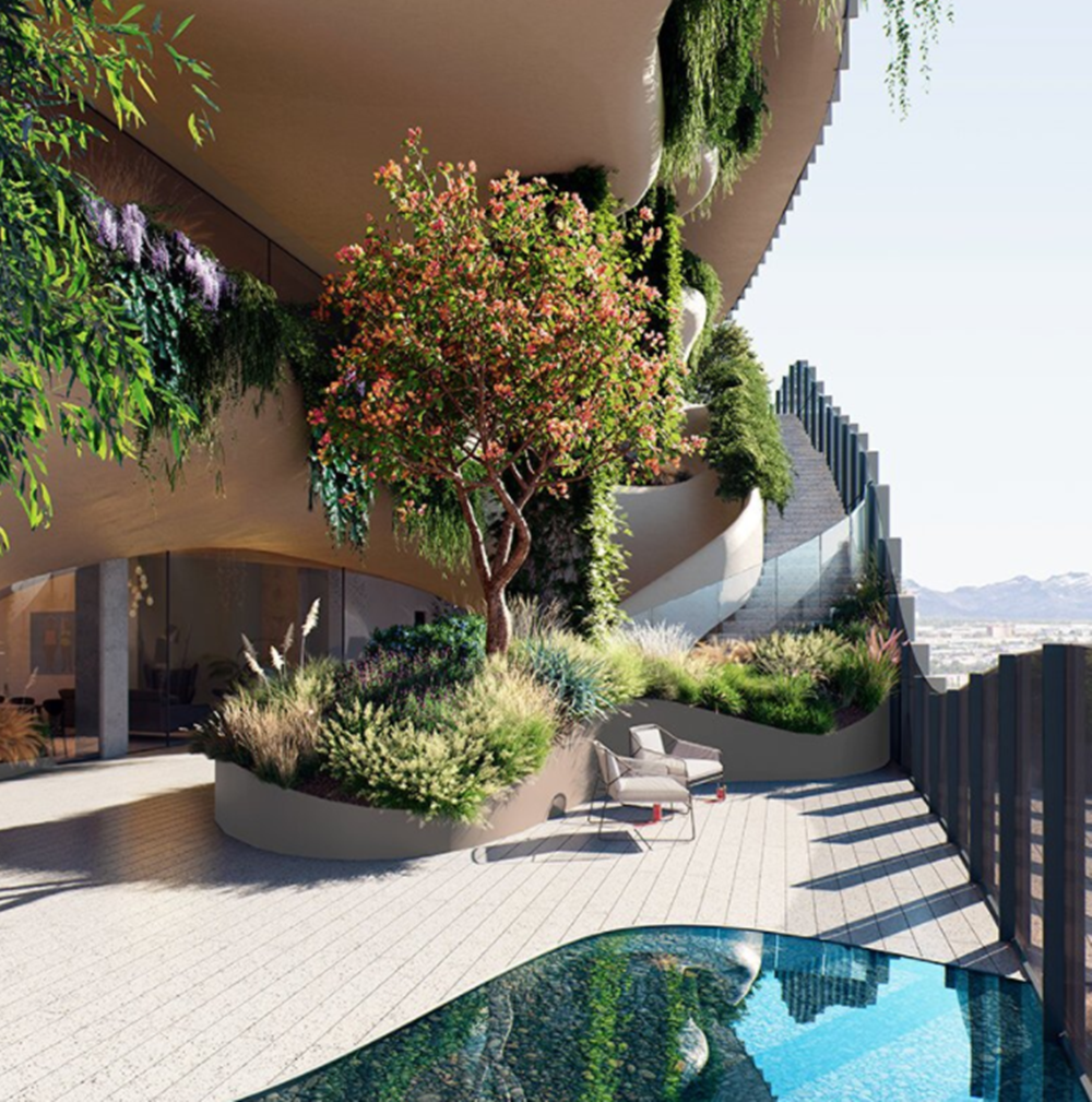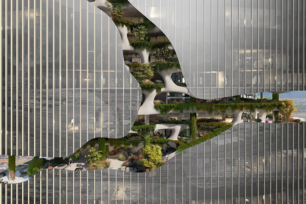 세로로 쪼개진 틈은 각 층의 야외 테라스 역할을 할 예정입니다. 이 디자인은 콜로라도의 다양한 지형으로부터 영감을 받은 것이라고 하는데요. 낮은 언덕 지대, 등산로, 협곡에서 록키산맥 정상까지 올라가는 것을 형상화한 것입니다.