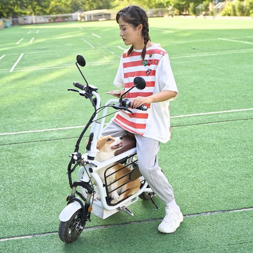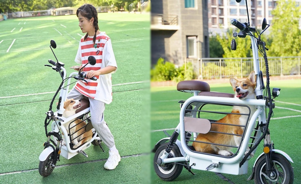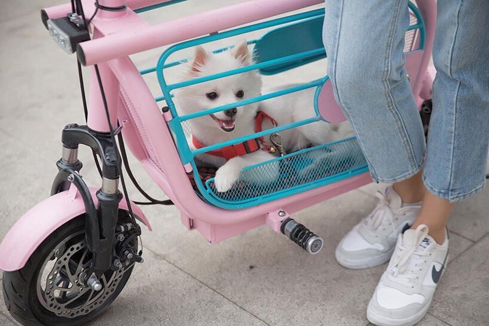 모펫은 소형 전기 스쿠터입니다. 이 스쿠터의 안장 바로 아래에는 케이지가 장착되어 있는데요. 이 케이지 안에 강아지 한 마리가 들어갈 수 있는 것이죠. 강아지의 크기에 따라 강아지의 머리가 나올 수 있는 구멍도 있는데요. 이 구멍으로 머리를 쏙 내밀고 주위를 둘러볼 수도 있을 것 같네요.