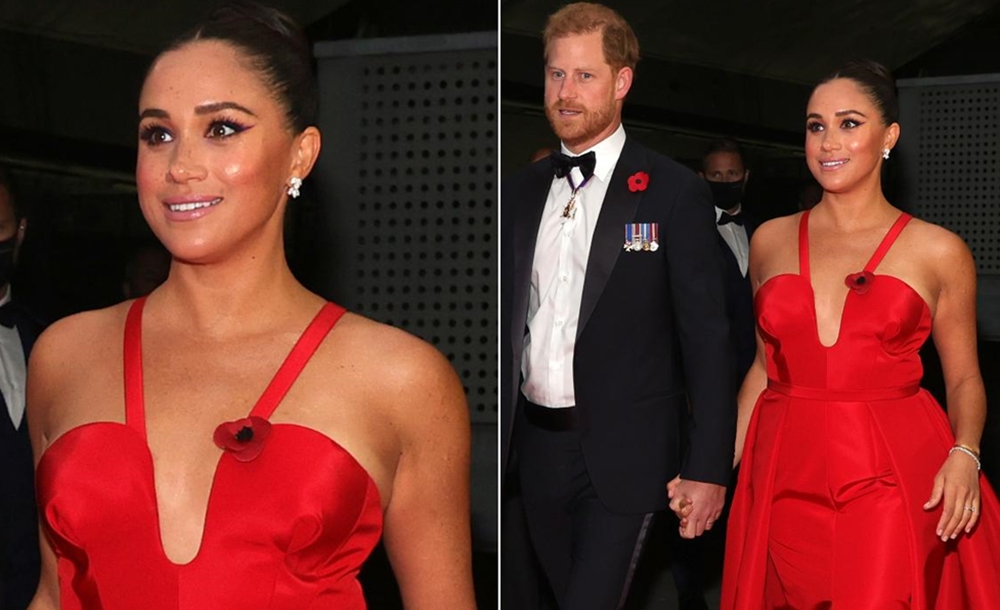 한편 해리 왕자는 턱시도를 착용하고 가슴에는 훈장을 줄줄이 달고 등장했습니다. 해리 왕자는 영국 군대에서 10년 간 복무하며 아프가니스탄을 두 차례 순방하기도 한 전역 군인인데요. 왕실의 일원에서 탈퇴하기 전까지는 명예 군직 자격이 있었기에 군복을 입고 공식 행사에 참석할 수 있었으나, 왕실에서 탈퇴한 후 명예 군직 자격 또한 박탈당했고, 군복을 입을 수 있는 권한 또한 박탈당해 일반 턱시도를 입은 것으로 보입니다. 그러나 영국에서 받은 훈장, 그리고 붉은 양귀비 꽃을 달아 자신의 조국인 영국을 잊지 않고 있습니다.