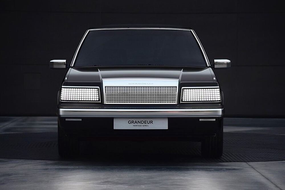 해당 차량은 '헤리티지 시리즈 그랜저'입니다. 현대에서는 얼마 전 1975년에 나온 포니를 전기차로 만들며 헤리티지 시리즈를 선보인 적이 있었는데요. 각그랜저는 두 번째로 나온 헤리티지 시리즈의 콘셉트 차량입니다. 헤리티지 시리즈는 향수를 불러일으키는 옛날 디자인과 미래 지향적인 기술과 디자인을 접목시키고 있는데요. 이번 헤리티지 시리즈 그랜저 또한 이에 충실한 레스토모드를 보여주고 있습니다.
