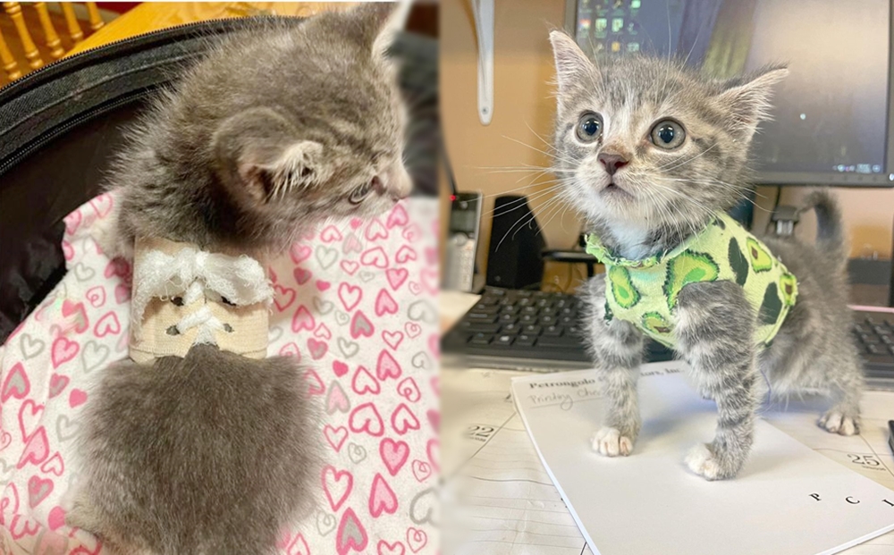 군부대에서 발견된 귀여운 아기 고양이 한 마리의 사연이 SNS 상에서 큰 화제가 되고 있습니다. 고양이는 매우 귀여운 셔츠를 하나 입고 있는데요. 이 셔츠는 보호소 직원들이 양말을 잘라 만들어준 것이라고 합니다. 그러나 이 귀여운 모습 뒤에는 역경도 있었는데요. 과연 이 고양이에게는 어떤 사연이 있었던 것일까요?