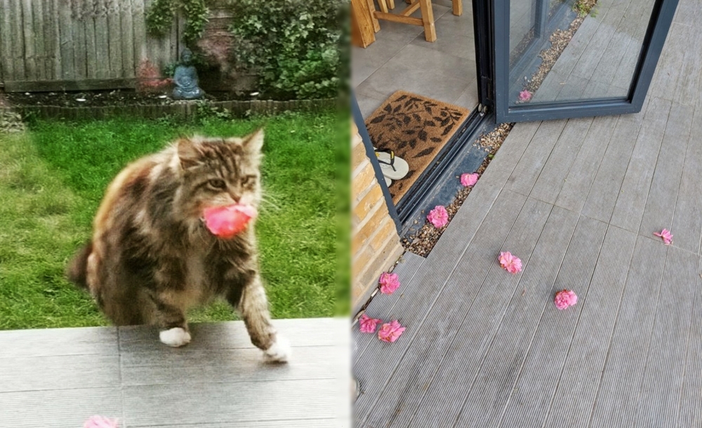 그러나 이 꽃은 바람이 가져다준 것이 아니었습니다. 하루는 이웃에 살고 있는 고양이 윌로우(Willow)가 입에 꽃을 물고 자신의 집으로 들어오는 것을 본 것이었죠.