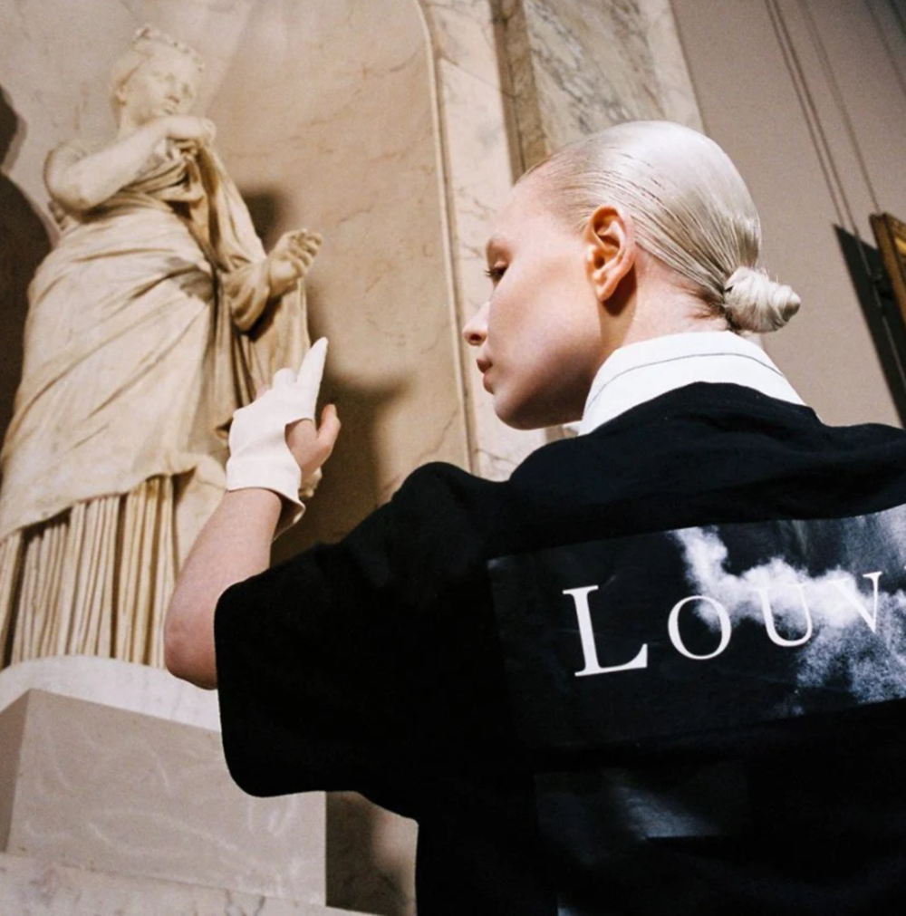 2019년은 레오나르도 다빈치가 사망한 지 500주년이 되는 해였습니다. 이에 루브르 박물관에서는 특별 전시를 기획했는데요. 이를 기념하기 위해 오프화이트와 루브르는 협업해 한정판 상품을 내놓았습니다. 이들은 총 6점의 의류를 선보였는데요. 후드 티셔츠 3종, 반팔 티셔츠 3종이었습니다. 의류의 앞면과 뒷면에는 레오나르도 다빈치의 그림이 프린팅 되어 있으며 오프화이트의 로고 위에는 루브르라는 글자를 넣어 클래식과 스트릿의 협업을 보여줬죠. 이 의상은 곧 매진되었는데요. 옷의 가격이 45만 원에서 80만 원 상당임에도 불구하고 완판 행렬을 이어갔습니다.
