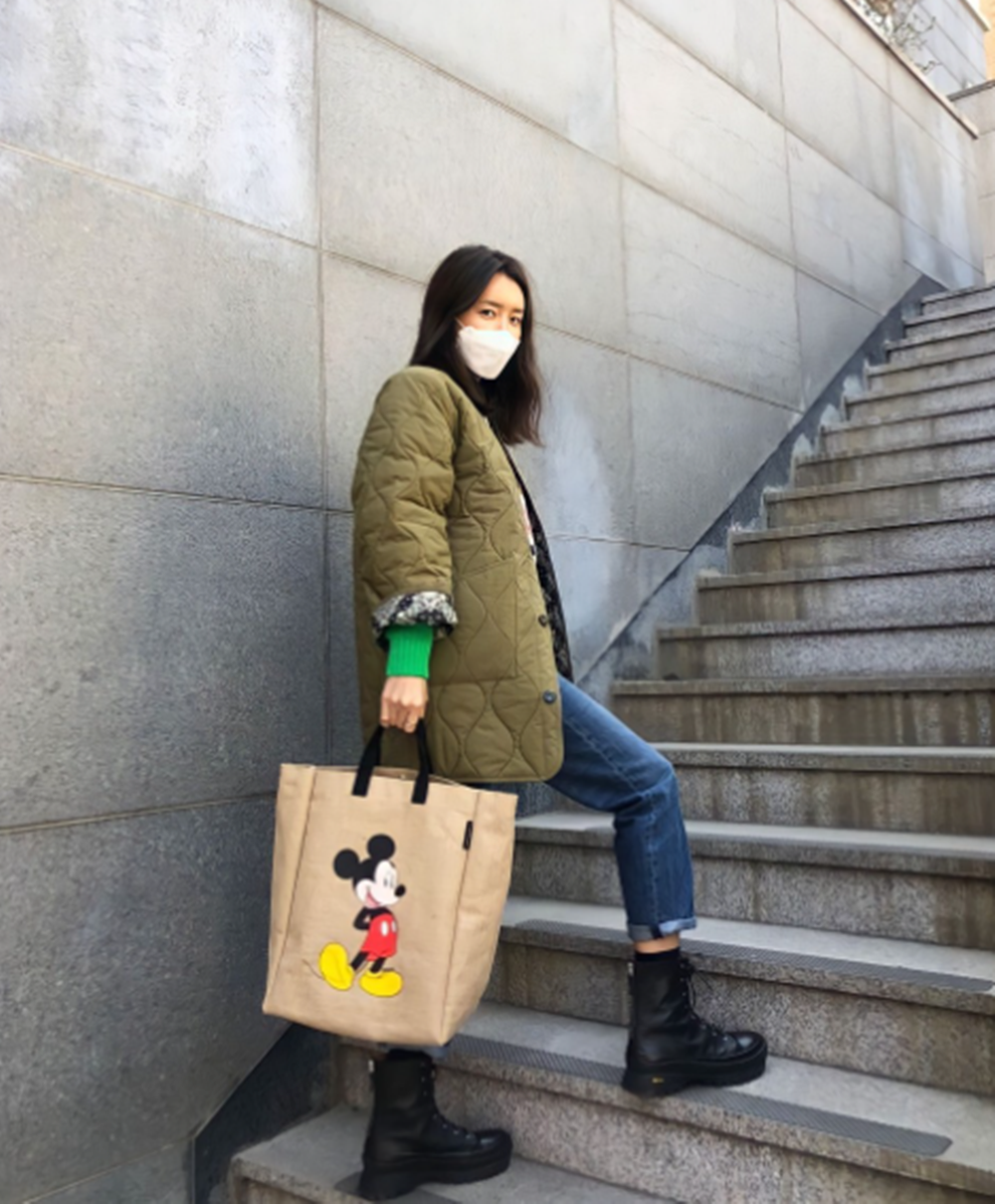 일명 '깔깔이 패션'이라고도 불리는 퀼팅 재킷 또한 인스타그램 속 인기 패션 아이템입니다. 특히 심플한 카키 컬러의 퀼팅 재킷을 입고 등장한 연예인들이 많이 있었는데요. 손나은, 크리스탈이 멋스러운 퀼팅 재킷 스타일링을 보여줬네요.