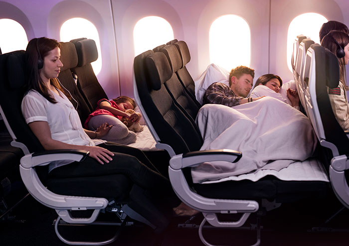 2017년 에어 뉴질랜드(Air New Zealand)에서는 한 아이디어를 한 공모전에 출품했습니다. 이 공모전의 이름은 '크리스털 캐빈 어워드(Crystal Cabin Award)'이며 이는 항공기 객실 인테리어계의 노벨상이라고 불리기도합니다. 이 아이디어는 2017년 이 공모전에서 당당히 입상했으며 실제로 이를 상용화시켜 전 세계 여행객들을 놀라게 했습니다. 이 아이디어의 이름은 '스카이카우치(SkyCouch)입니다.