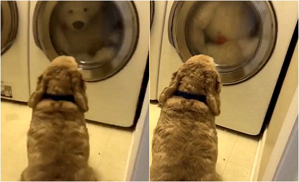 그러던 중 에스티는 이 테디 베어가 심각하게 더러운 것을 보았습니다. 이에 한번 세탁을 해야겠다고 마음먹었죠. 이에 곰인형은 세탁기로 들어가게 되었습니다. 세탁기에서 한참을 돌아가던 곰돌이 인형. 그리고 세탁이 잘 되고 있는지 확인하려던 에스티는 재미있는 광경을 목격했는데요. 바로 햅스가 곰돌이 인형 앞에서 우두커니 서서 돌아가는 곰인형을 바라보고 있는 것이었습니다. 이후 곰인형은 건조기에 들어갔고, 햅스는 한참 동안이나 곰인형에 몸을 기댈 수 없었죠.