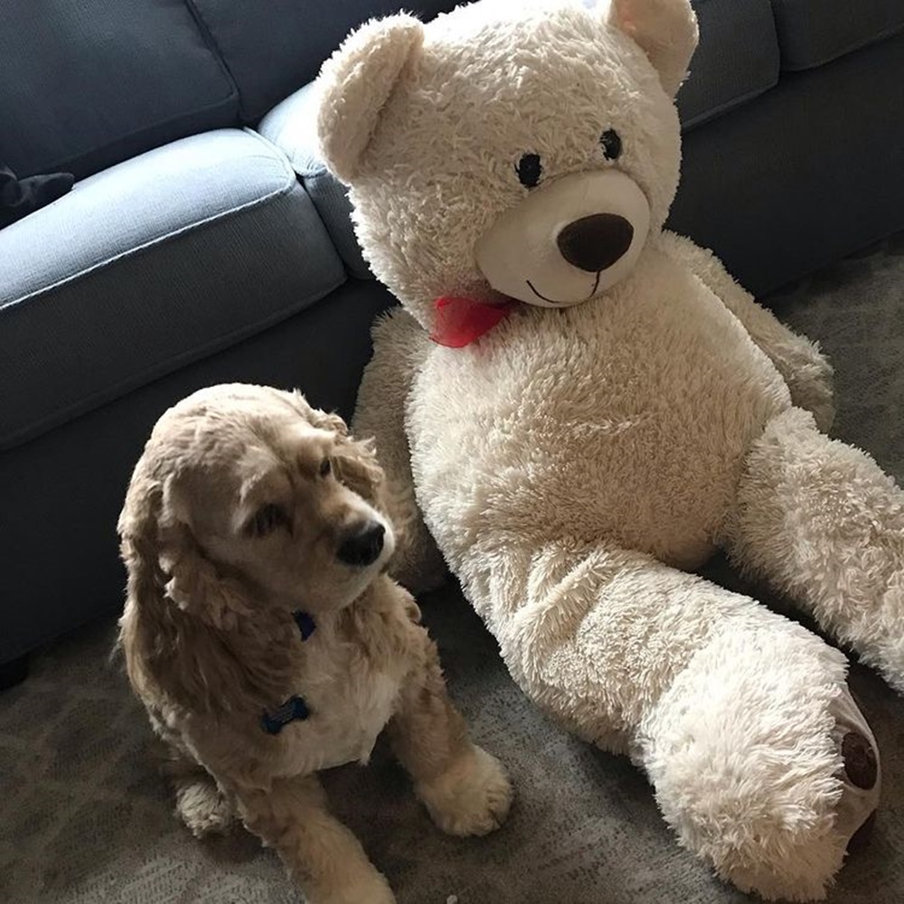 햅스는 한시도 곰인형과 떨어져 지내지 않았는데요. 자신의 덩치보다 더 큰 곰을 끌고 집안 곳곳을 다니는 것이 일상이라고 하네요. 만약 누군가가 이 인형을 집어 든다면 이 인형을 자신에게 돌려줄 때까지 집요하게 쫓아다닙니다.