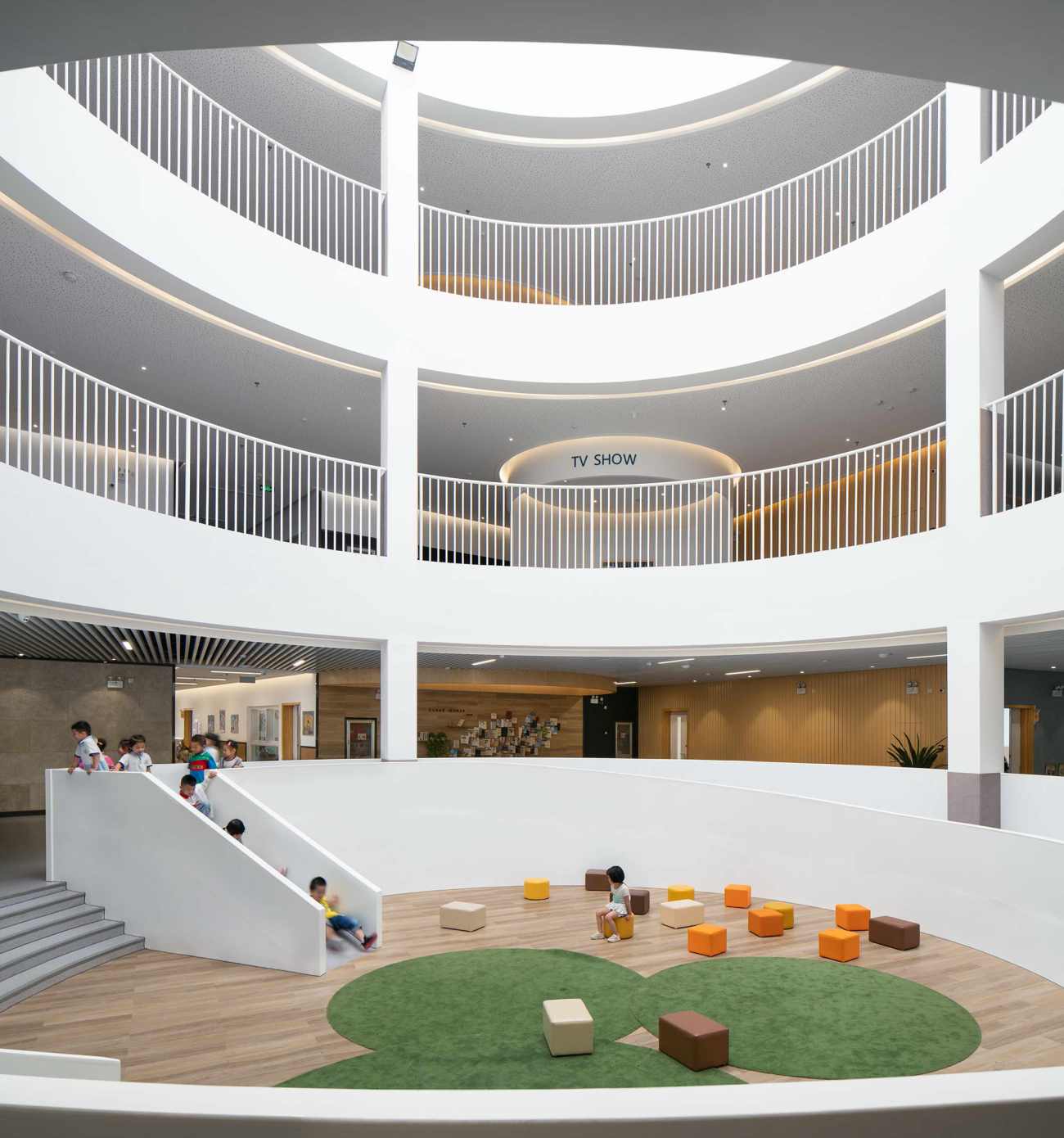 유치원 건축물의 콘셉트는 이 유치원의 교육 모토를 정확하게 반영하고 있습니다. 유치원의 교육 모토는 '날아다니는 꿈'인데요. 이를 비행기로 형상화했고, 아이들이 꿈과 창의력을 발산할 수 있도록 돕는 것이죠. 사실 사람들은 알게 모르게 자신이 있는 공간의 영향을 많이 받는다고 하는데요. 이에 아이들 또한 창의적인 모양의 건물에서 창의성을 키울 수 있는 것입니다.