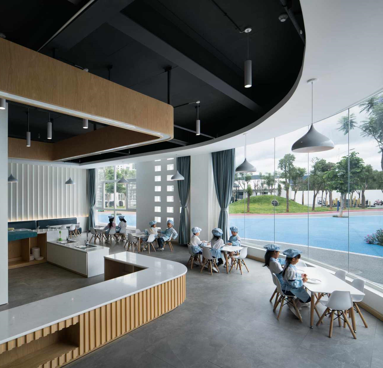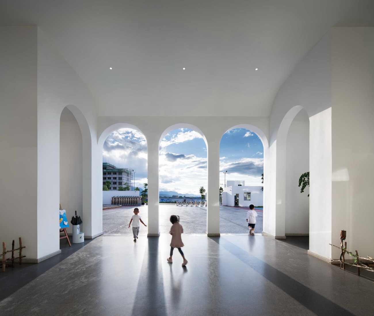 유치원 건축물의 콘셉트는 이 유치원의 교육 모토를 정확하게 반영하고 있습니다. 유치원의 교육 모토는 '날아다니는 꿈'인데요. 이를 비행기로 형상화했고, 아이들이 꿈과 창의력을 발산할 수 있도록 돕는 것이죠. 사실 사람들은 알게 모르게 자신이 있는 공간의 영향을 많이 받는다고 하는데요. 이에 아이들 또한 창의적인 모양의 건물에서 창의성을 키울 수 있는 것입니다.