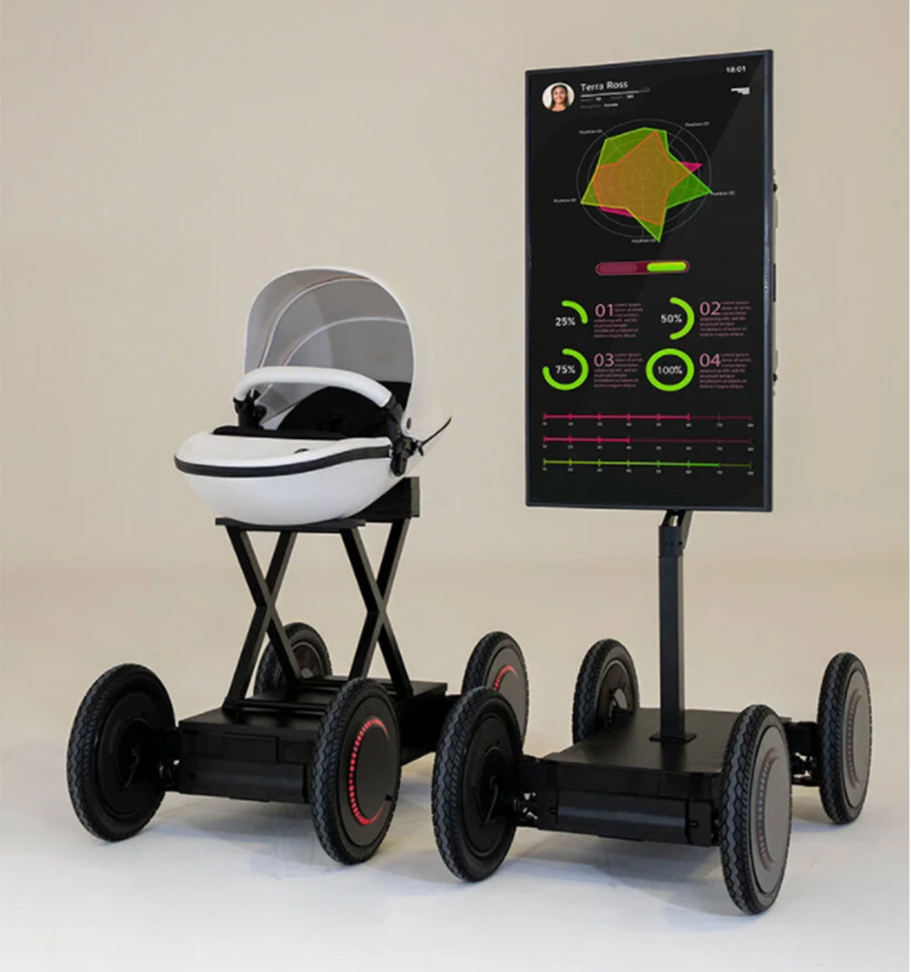모베드 위에 유모차를 설치한 경우도 공개했습니다. 이 경우 아이의 보호자는 유모차를 밀지 않아도 되는데요. 어떤 환경에서도 아이가 편안히 이동할 수 있을 것으로 보입니다. 이뿐만이 아닙니다. 모베드에 운동기구를 부착하면 운동하는 사람의 심장박동, 운동 시간 등을 보여줄 수 있죠.